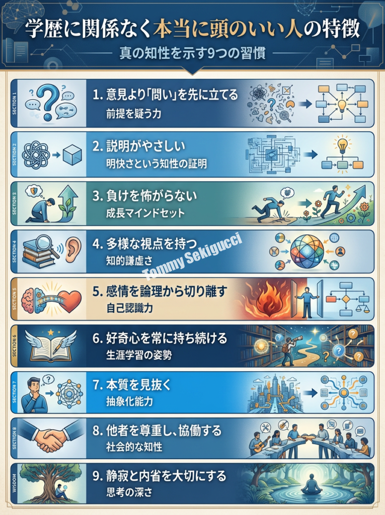 真に頭のいい人とは、膨大な知識を暗記している人ではなく、物事の本質を見抜き、的確に判断し、効果的に行動できる人です。そして、そうした能力は、学歴とは無関係に、日々の習慣や考え方によって培われるものなのです。