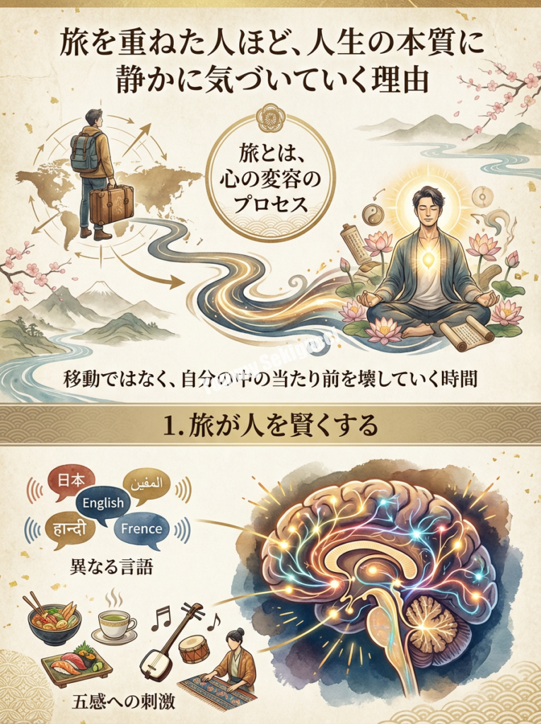 多くの場所を訪れてきた人たちは、どこか落ち着いています。目の奥に、遠くを見てきた人だけが持つ静けさがあります。それは諦めの結果ではなく、理解の果てにある穏やかさです。この記事では、旅を重ねてきた人の心の中で、どんな変化が起きているのかを、優しく見つめていきます。