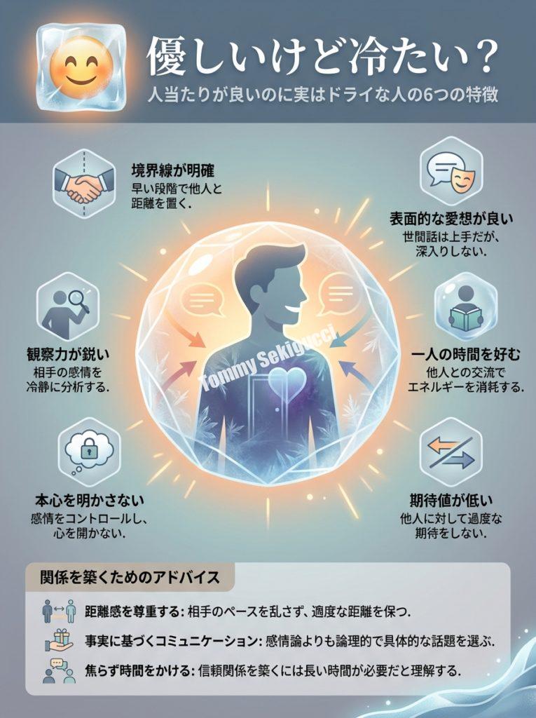 今回は、この「人当たりは良いのに実はドライな人」の心理メカニズムを深く掘り下げ、彼らがなぜそのような行動パターンを取るのか、そして私たちはそのような人々とどう付き合っていけばよいのかについて、詳しく解説していきます。