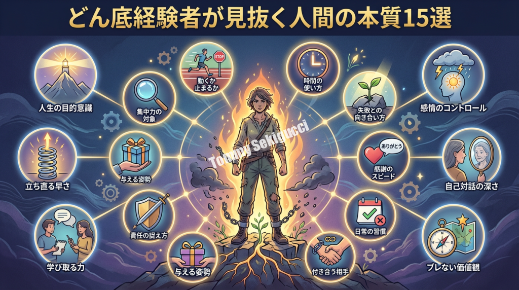 私たちは、必ずしもどん底を経験する必要はありません。しかし、どん底を経験した人たちの視点から学ぶことで、人を見る目を養うことができます。今回紹介した15の視点は、人間関係を豊かにし、自分自身の成長を促す指針となるでしょう。